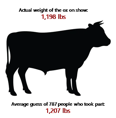 The Stock Market is an example of the phenomenon known as the Wisdom of The Crowd. The ‘wisdom of the crowd’ is the theory that the “collective judgment of a large, diverse, and independent group of individuals can be more accurate and insightful than that of a single expert or even the smartest person in the room.” The classic example of the wisdom of the crowd is the estimation of an ox’s weight. In this scenario, a large group of people are polled on what they think the ox weighs, and while their individual guesses are often wrong, the average of their guesses was extremely close to the actual weight.