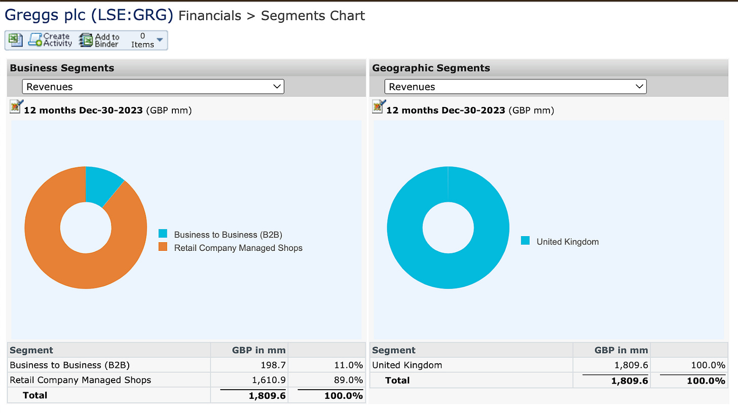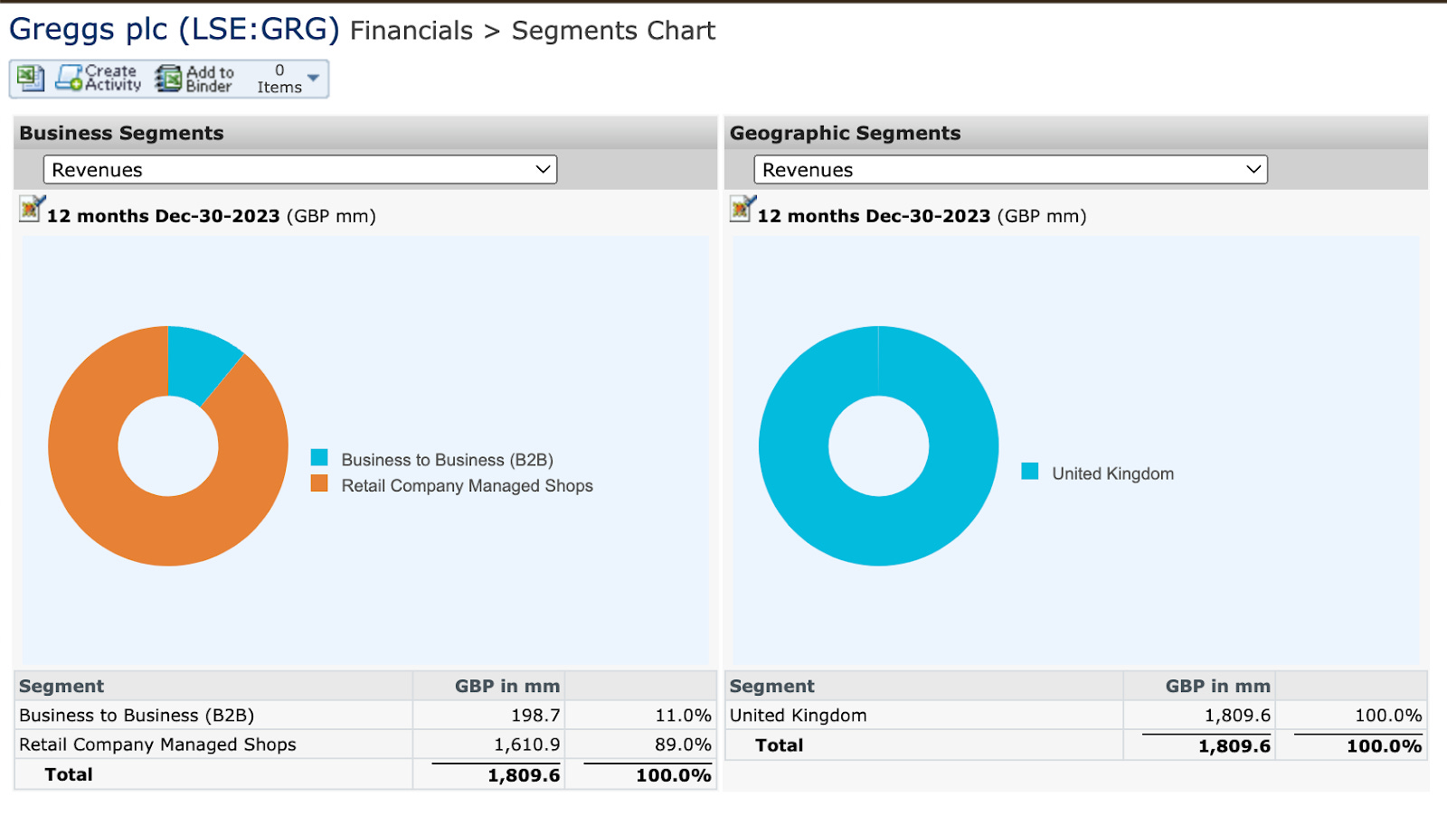 Greggs Plc is a food on the go retailer, selling baked goods, sandwiches, and beverages. They sell products to franchisees, and wholesale their goods as well. Greggs’ largest segment is selling through their company managed shops, composing 89% or £1.6b of their £1.8b of sales in 2023. The other £200m comes from their B2B business segment, which includes wholesaling and franchise partners. The business-to-business segment is their fastest growing, with 24% YoY growth from 1H23 to 1H24.