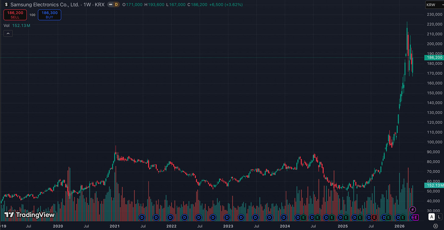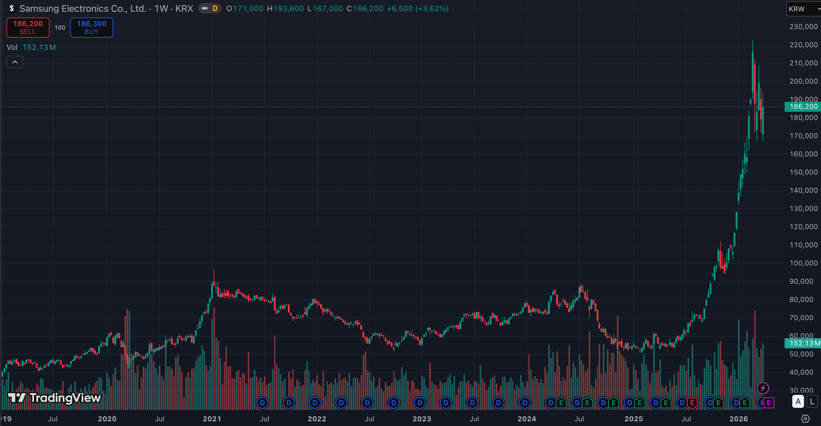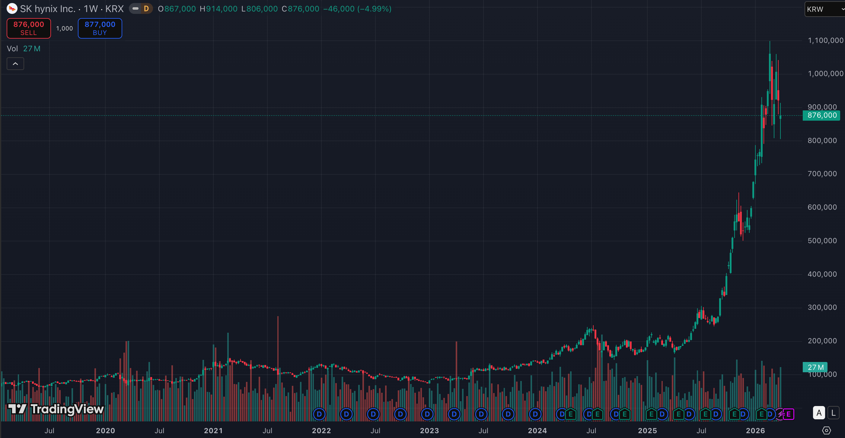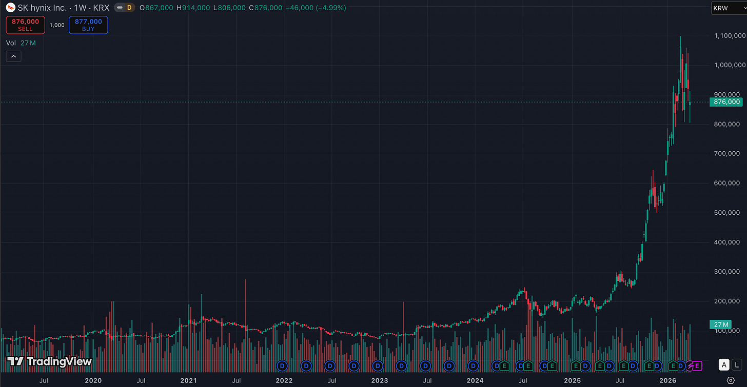 For the memory names specifically, the market has real reasons to be cautious. Export controls on China remain a moving target, any tightening hits Samsung and SK Hynix directly. HBM is a cyclical product category with a history of brutal oversupply corrections, and the market has been burned before. There’s also a legitimate question about whether hyperscaler capex is sustainable at this pace, or whether we’re approaching a period where the Mag-7 pull back on spending as they digest existing capacity.