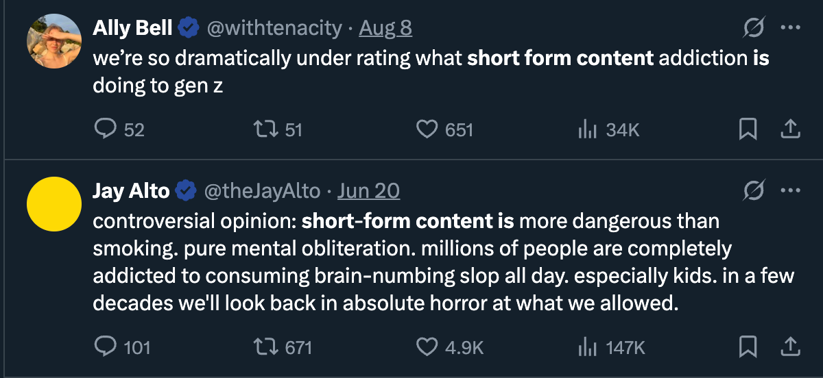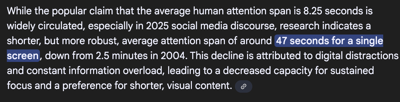 With the heightened presence of short form content, as well as the younger generations (Gen Z and Gen Alpha) being introduced to short form content at an increasingly young age, attention spans are dropping at historic rates.